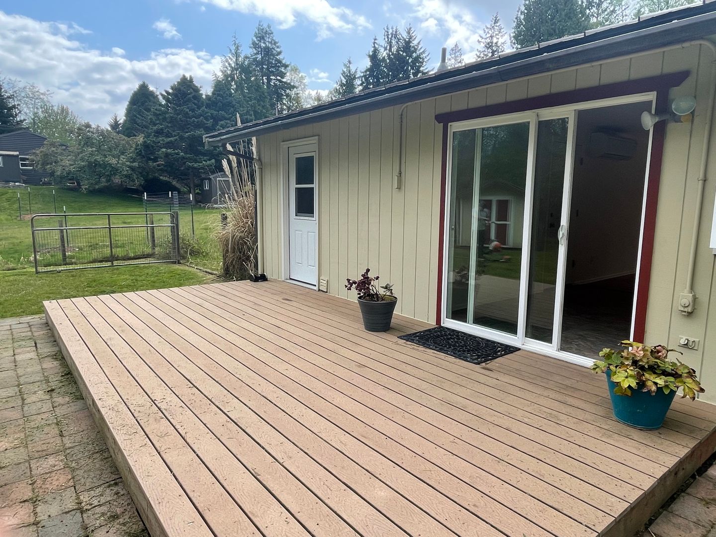 Sweet cottage in Langley is ready for a new tenant! This two bedroom, and one bath home is located on a quiet street in Langley. Fully fenced yard with large deck to sit, relax and enjoy the wildlife. Kitchen and eating area have newer cabinets and view to the backyard. The attached garage and a garden shed give you ample storage. Close to restaurants, art galleries, and performing arts! The perfect place for a vacation home or full time living. Available April 15th, a one-year lease to start. One small dog under 25 pounds. This is a non-smoking home and property. Quiet cul-de-sac location.