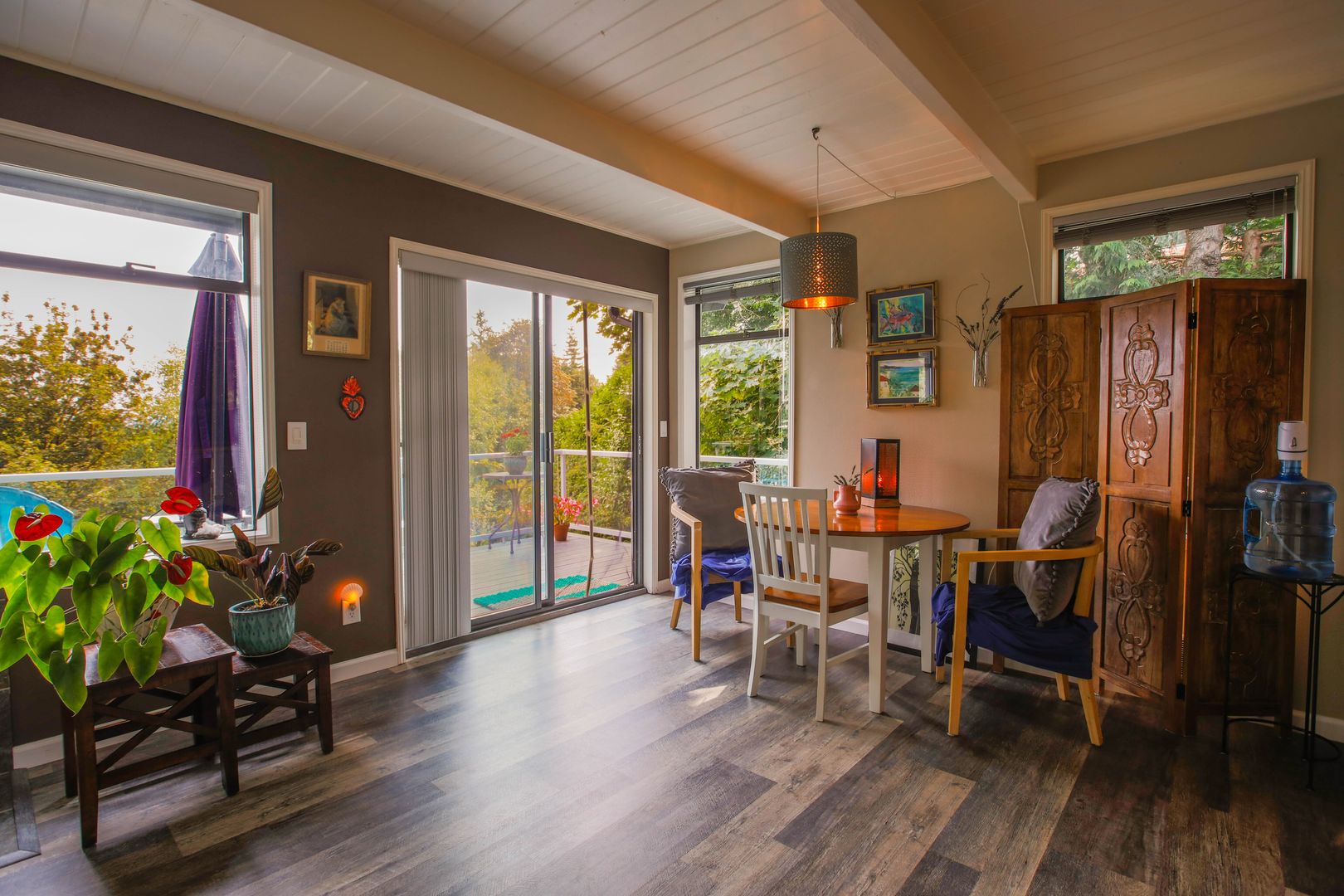Peace and creativity flow from this unique custom designed two bedroom and two bath home!! Enjoy the meandering fully landscaped property which makes this home complete! Exceptional care has been taken by the owners and will be a tenants dream home! Custom paint and lighting, propane fireplace, skylights, beautiful windows, stainless appliances in the kitchen and special lovely, engineered wood floors throughout! Two spacious bedrooms and two and a half baths and a gorgeous living room/great room feel! Enjoy the mornings, afternoons and evenings on your private deck overlooking the rear yard with mature plantings. In the fall and winter months you will have a water view! Landscape is included with the rental price of this home. Pictures do not do this home justice. This is a non-smoking home and property, one year lease to start and tenants pay all utilities. Interior washer and dryer included. Auto generator provided which will be much appreciated! Enjoy quiet walks on the soft sand beach or a dip in the community pool in season! One small dog or cat with references and additional deposit. Please do not access property on your own. Four uncovered parking places. Three minutes to the use of community pool, beach, boat launch, and tennis courts which are open seasonally and the owner pays for the use fee! This is a commuters dream with a 15 minute drive to the ferry. Don't miss out on this stunning home!