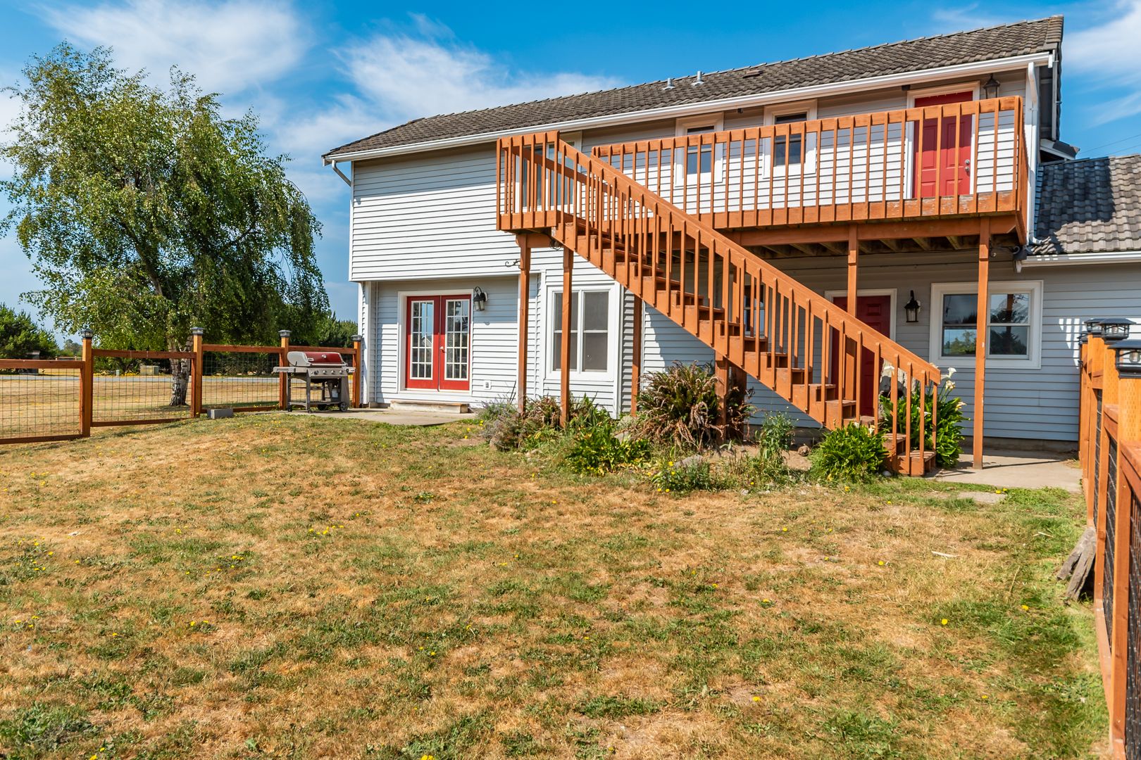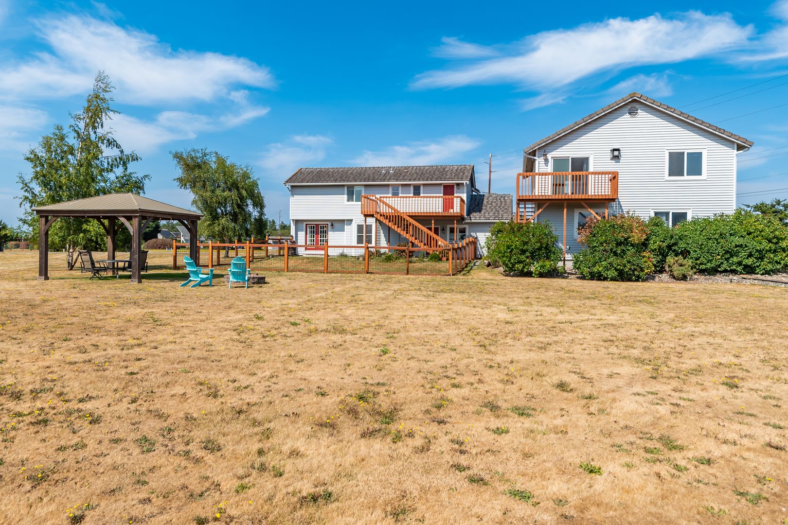 Rare find and ready for a new tenant. Enjoy the lovely ocean breezes, and sunsets over the Olympics & easterly views of the Cascades, Mt. Baker, and the lavender fields. The main house (leased unfurnished) has wide open spaces with vaulted ceilings, skylights, and propane fireplace in the bonus living room! The dining room w/ French doors and great room are perfect for entertaining! The second level primary suite has vaulted ceilings, bath with radiant heated floors & a walk-through closet to your deck. Additional bedrooms have extra large closets. Guest apartment over garage is beautiful with a one-bedroom, full kitchen and living area, propane fireplace and comes furnished. This home has a two-car garage, gazebo, and fire pit. Tenant maintains landscape and pays for all utilities. Pets are ok with additional deposit and references. One year lease to start and this is a smoke free home and property. Please do not access home on your own.
